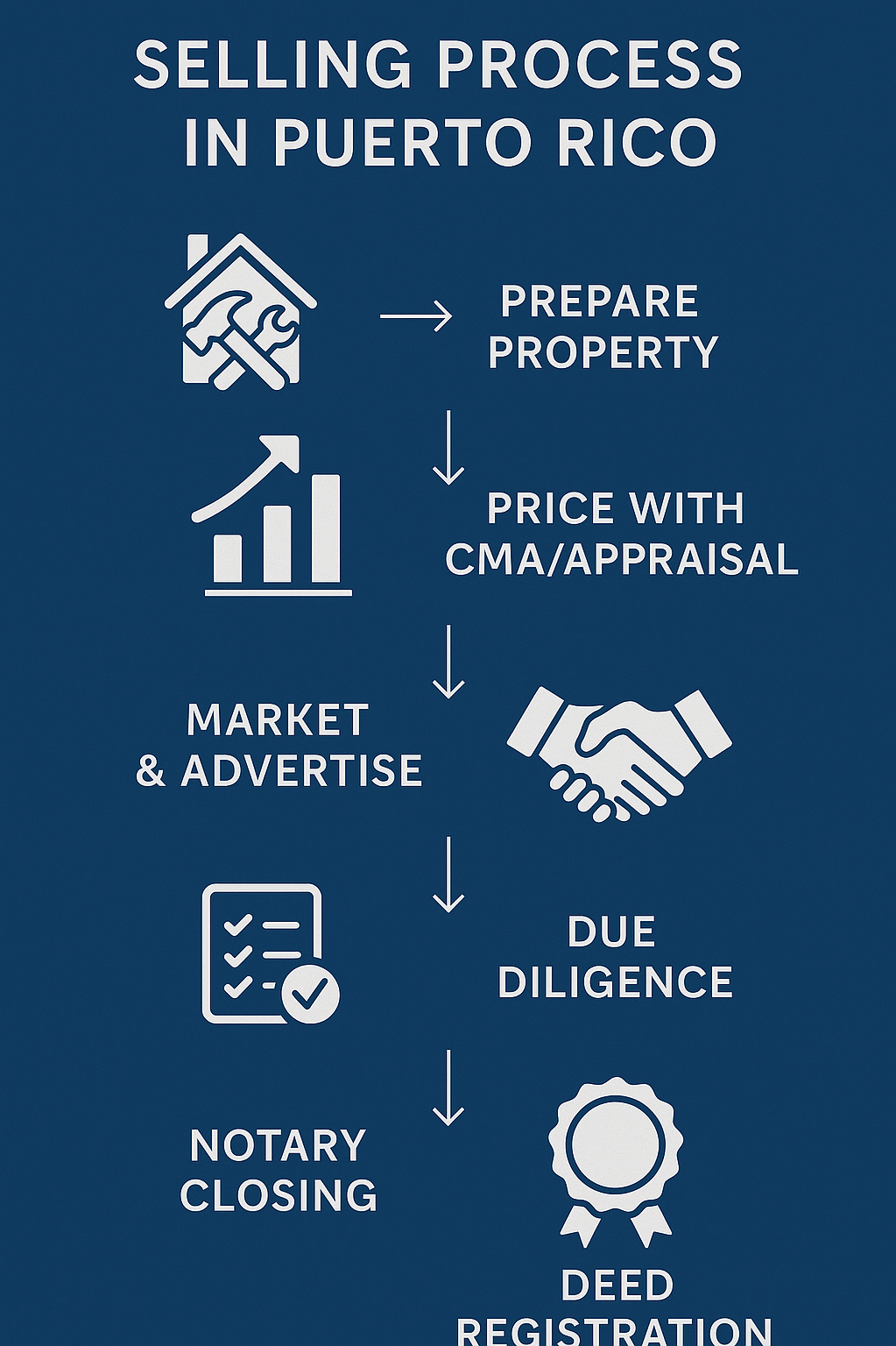 All Puerto Rico sales must be finalized before a notary attorney. At this stage, payments are made, liens and utilities are cleared, and the deed (escritura) is signed.